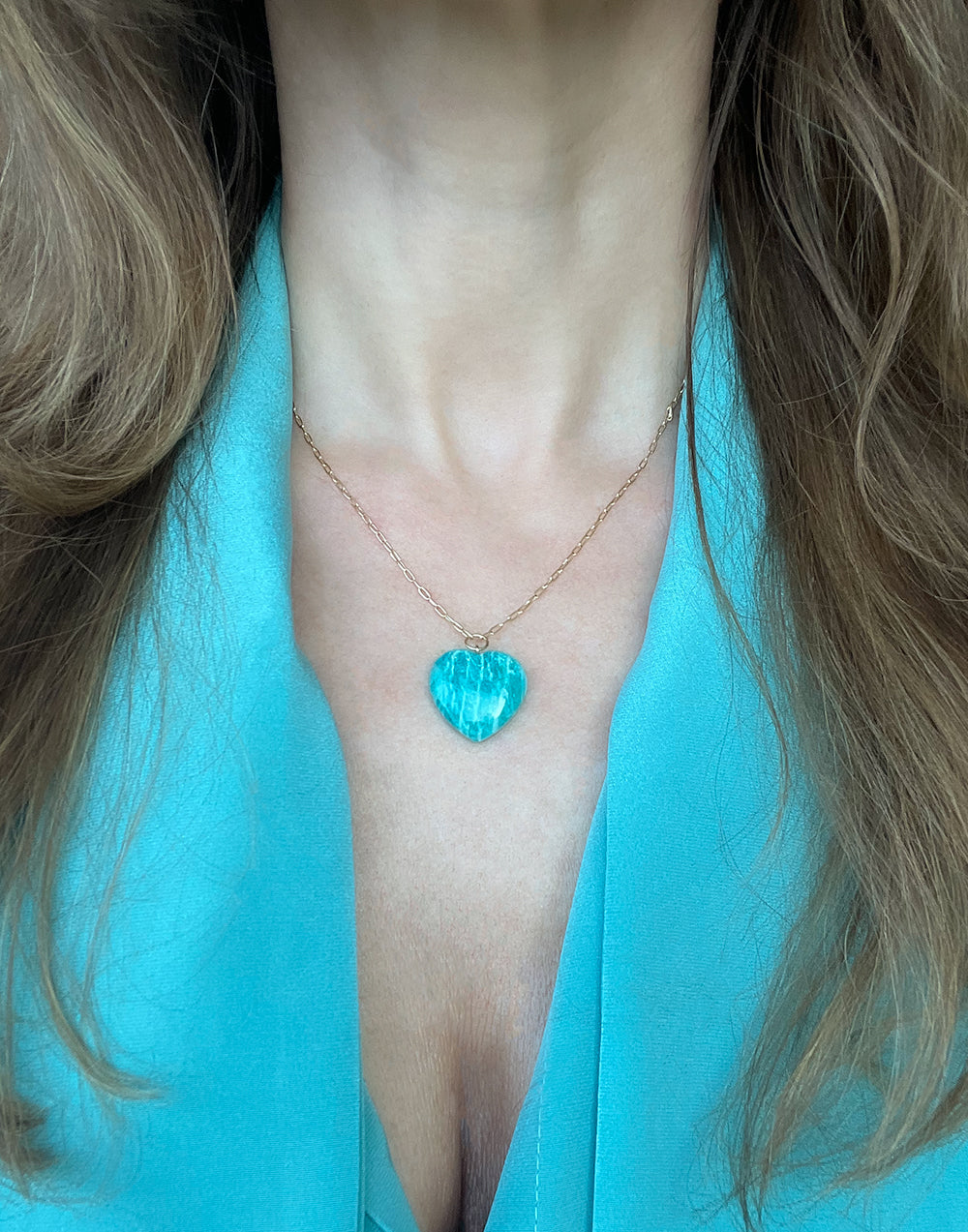 Amazonite Heart Pendant on Gold Chain