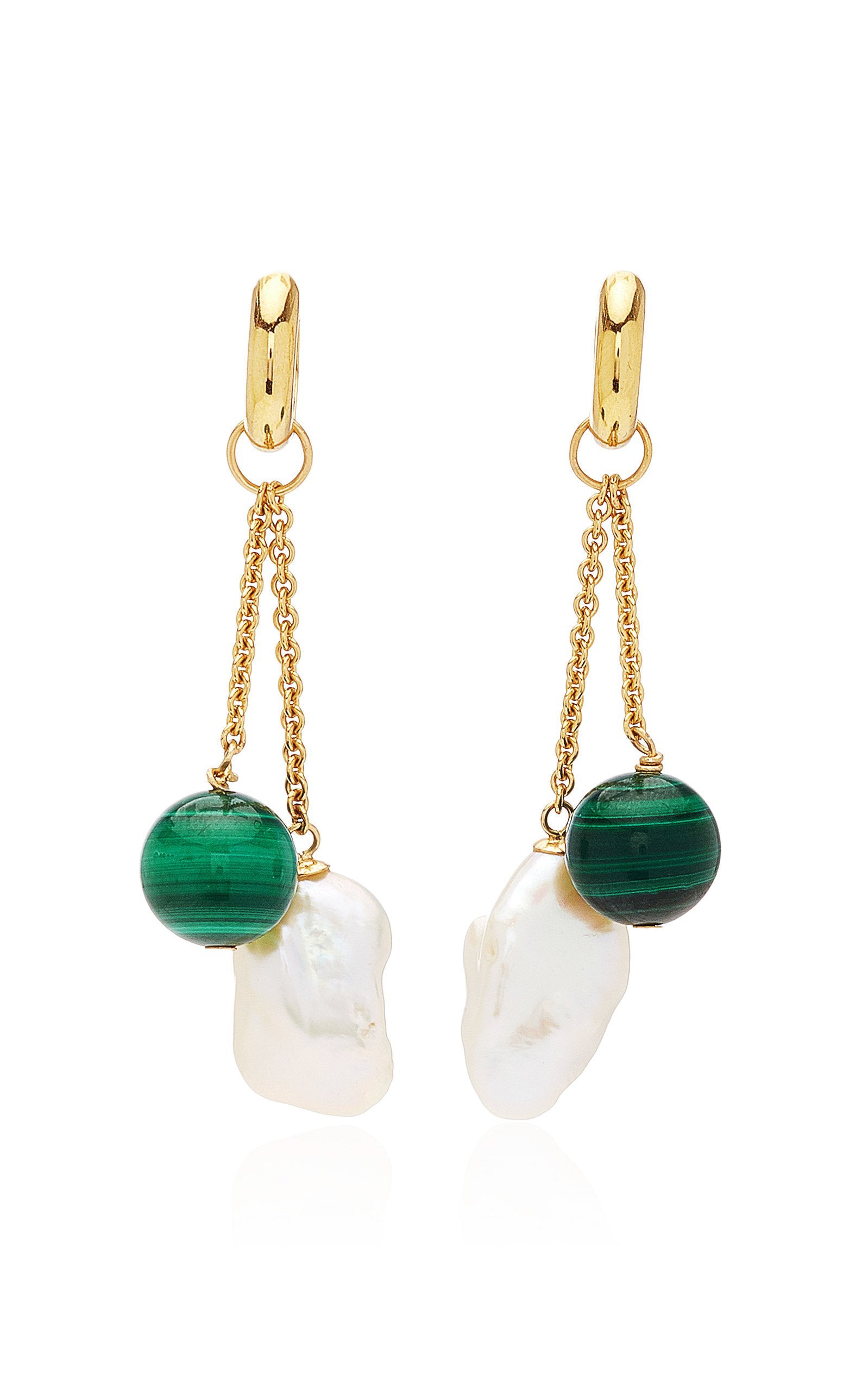 Les Charmantes Baroque Pearl & Malachite Charm Earrings