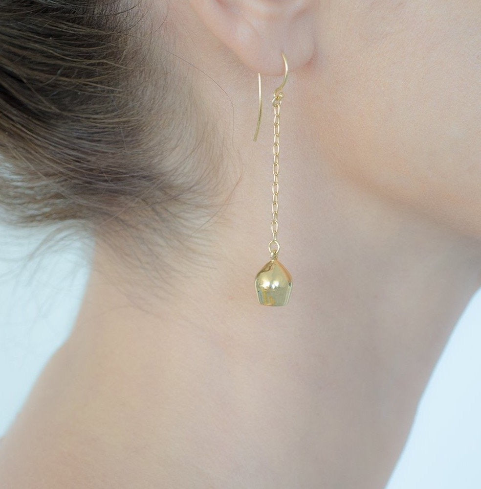 - Pair of dangle pieced earrings with plain Lune charms all crafted in 18k yellow gold. The gold charms measure approx. 9/16"x3/8" (1.4cmx0.9cm) and hang from a 1 3/8" (3cm) chain. Size Chart