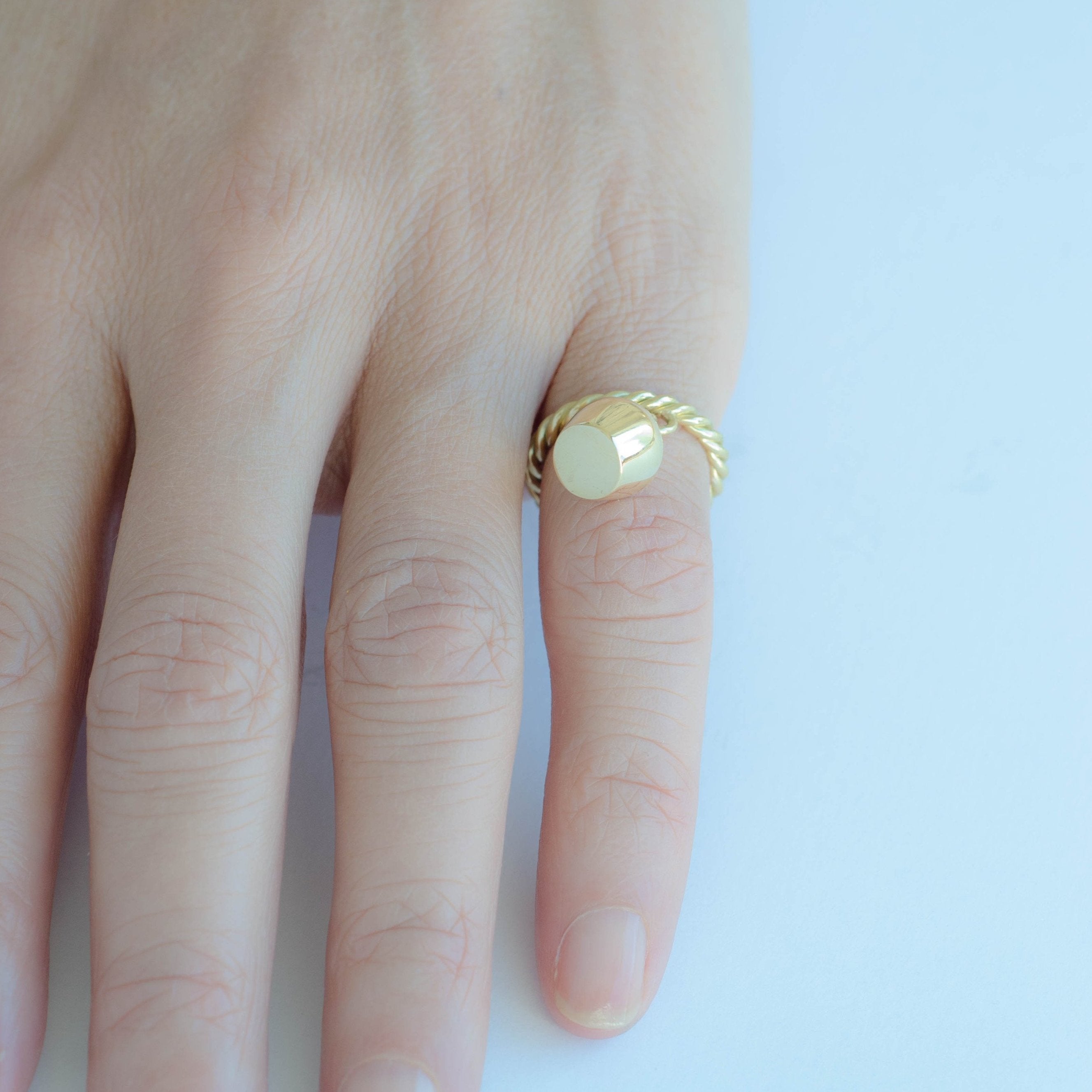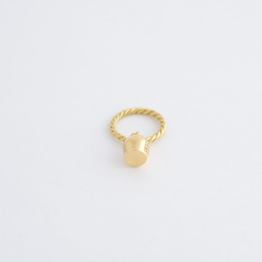 The playful beauty of Nacres des Lunes mirrors the radiance of the full moon. 18k yellow gold Diamond TCW 0.21 Made to order - August delivery Hand twisted in NYC Size & Fit Hand-twisted wire band with a dangling...Read more