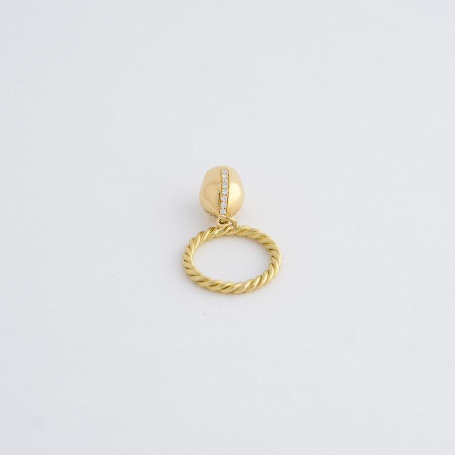 - Hand-twisted wire band with a dangling Lune charm set with 24 round cut white diamonds. The gold charms measure approx. 9/16"x3/8" (1.4cmx0.9cm). Size Chart