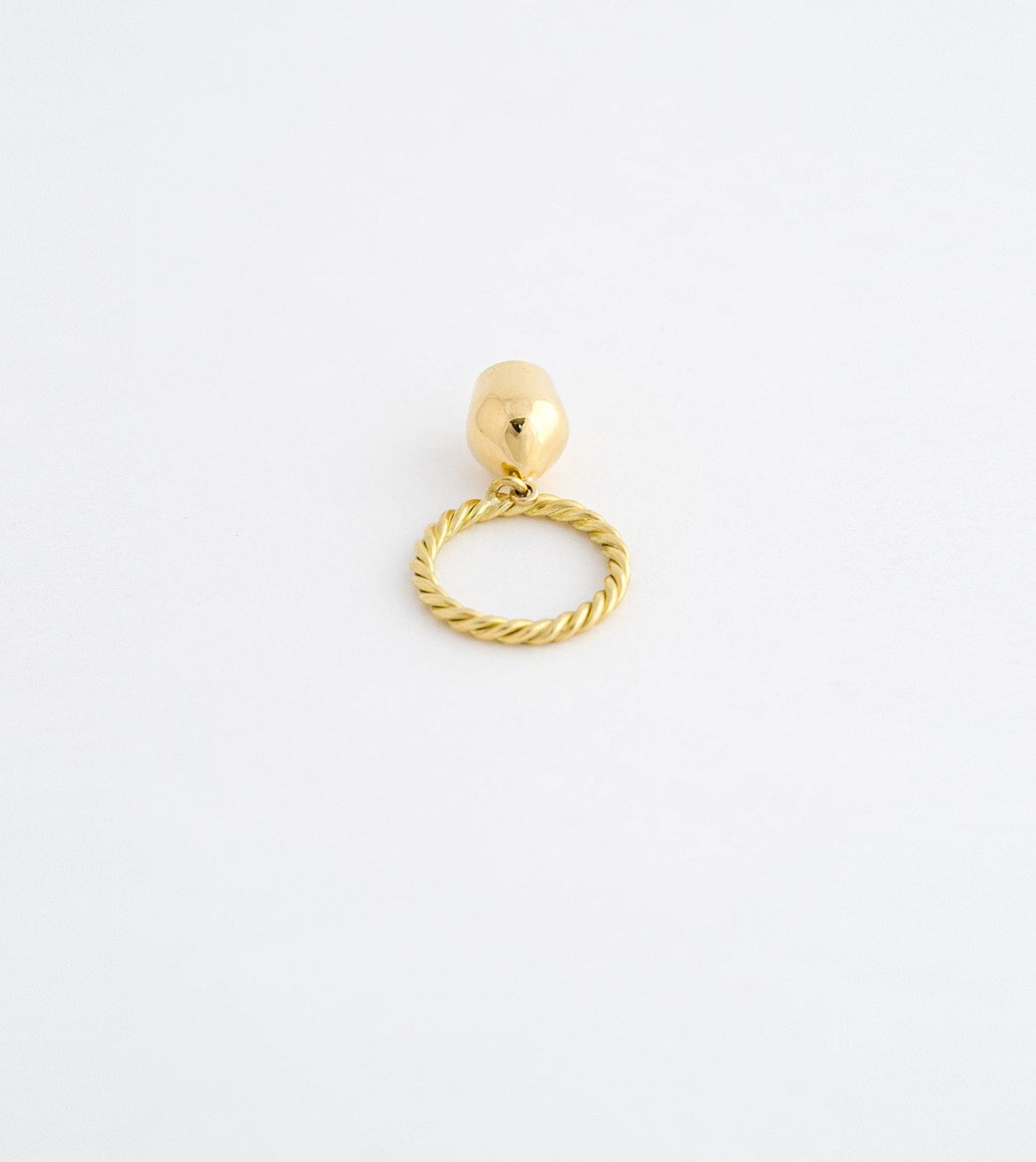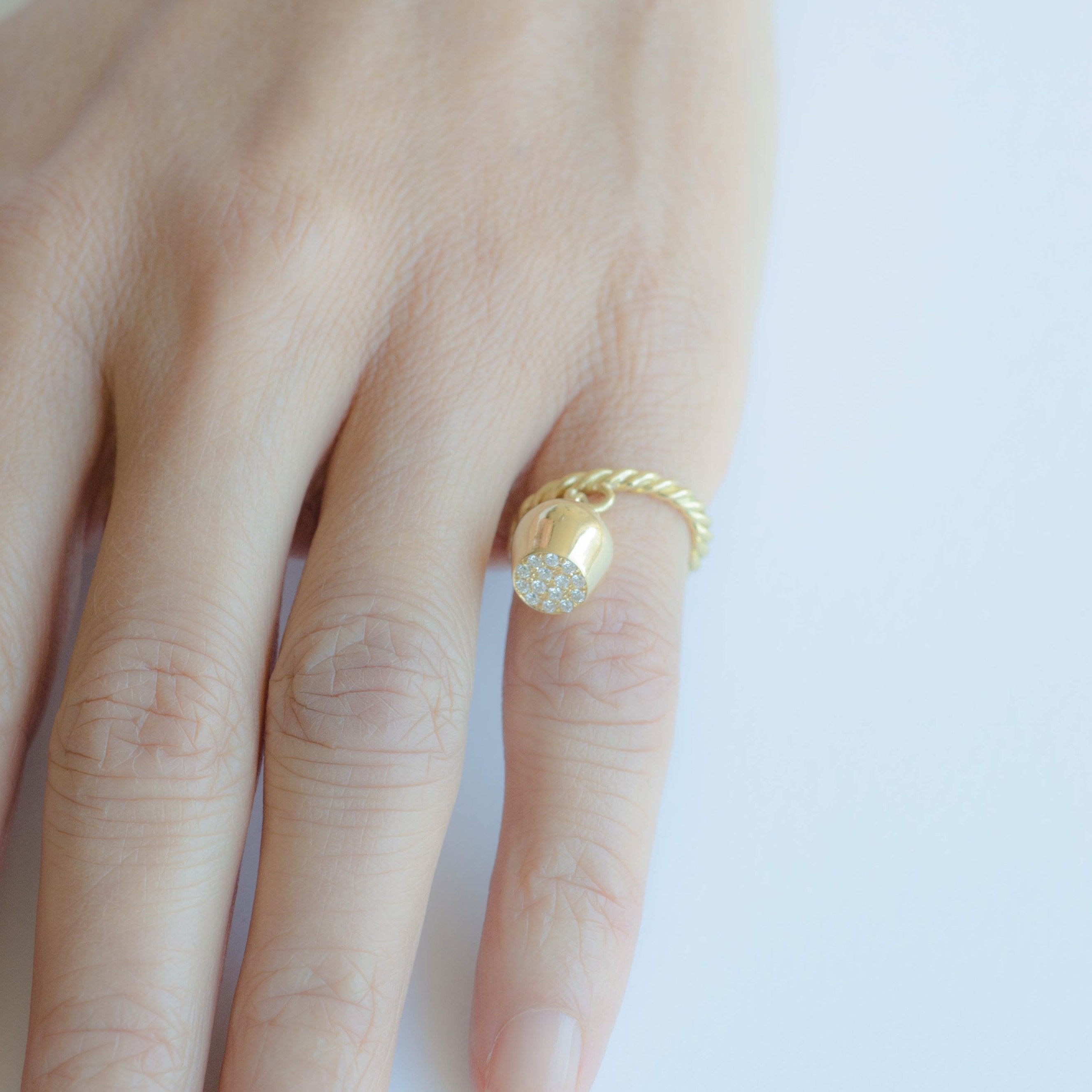 Hand-twisted band with a dangling Lune charm set with 14 round cut white diamonds. The charm measures approx. 9/16"x3/8" (1.4cmx0.9cm). Size Chart