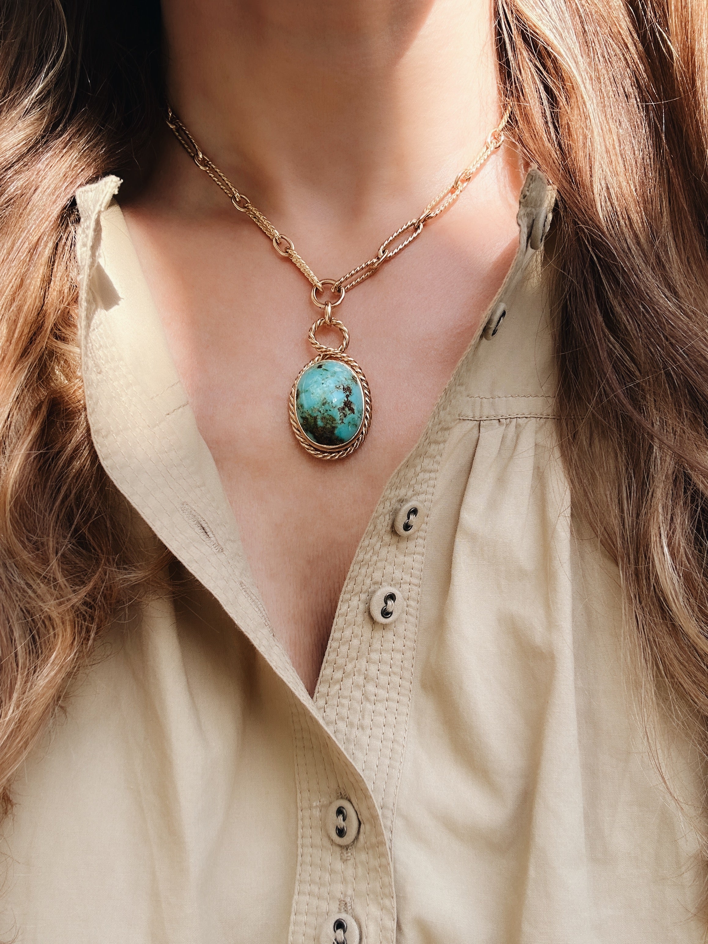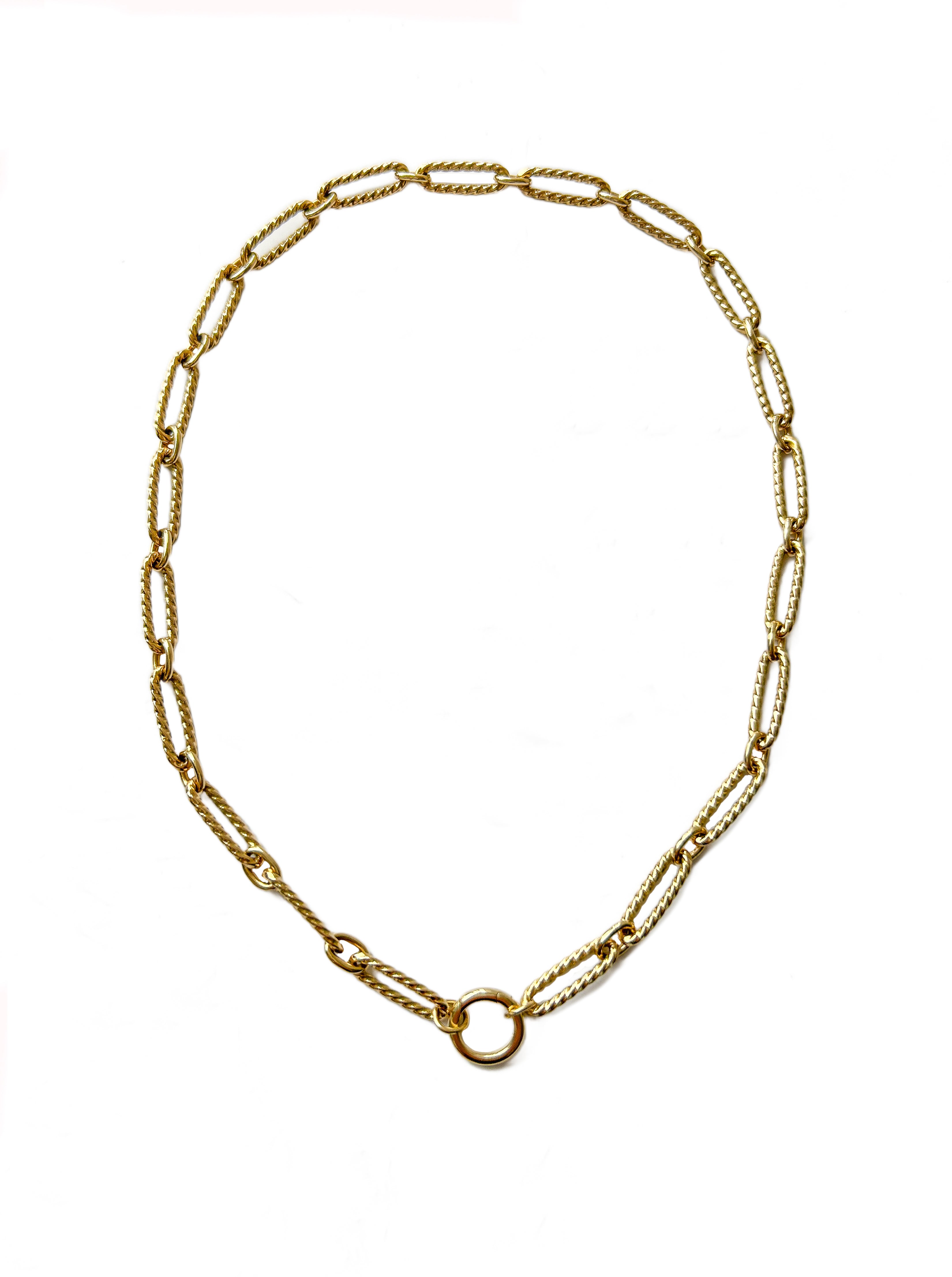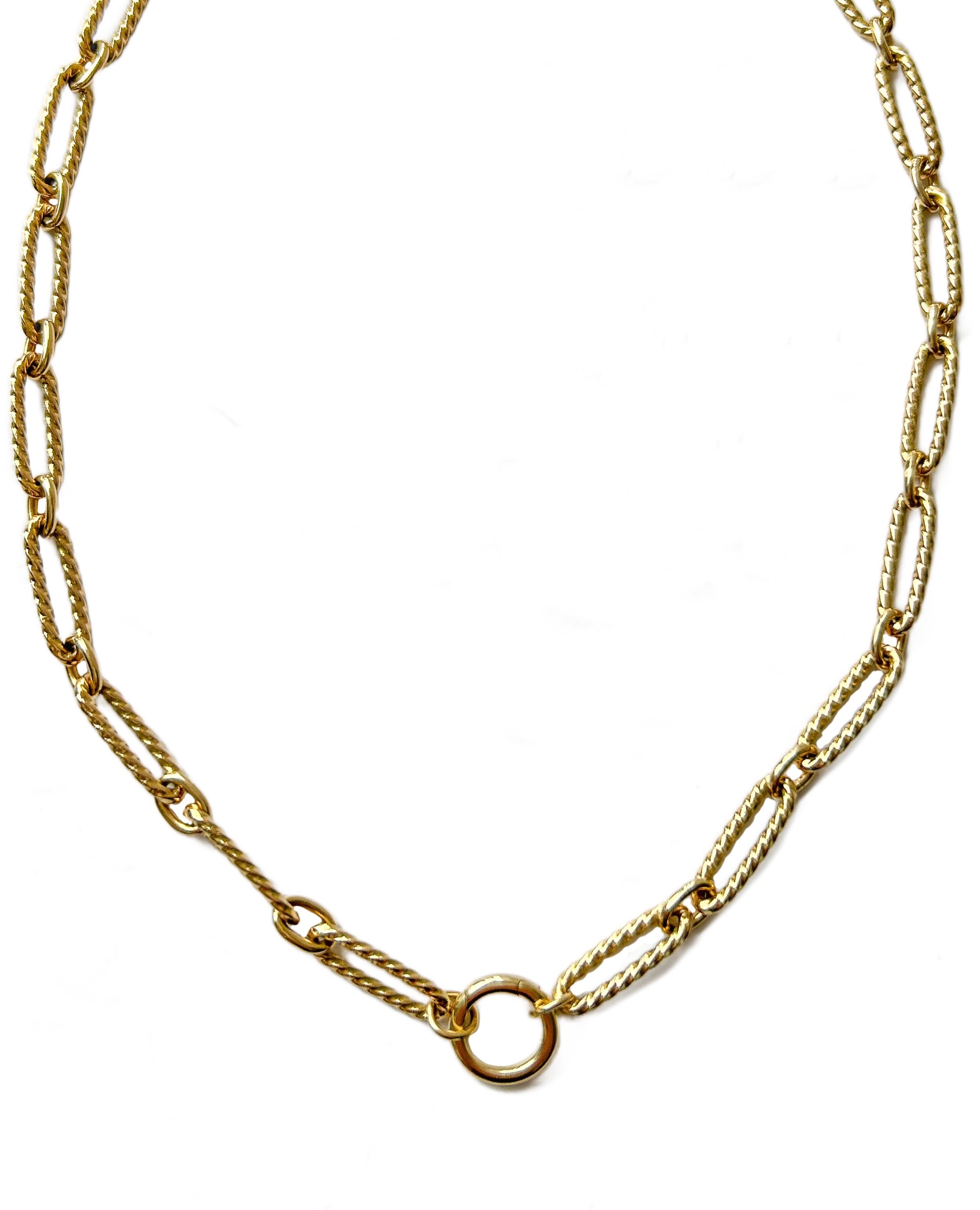 - Our hand made gold necklace comes in 3 sizes: 16" (as shown), 18" or 20". The chain comes with a push clasp to accommodate one or many pendants, that are easy to attach. Please be aware that the price varies with the size and will change in the cart. Size Chart