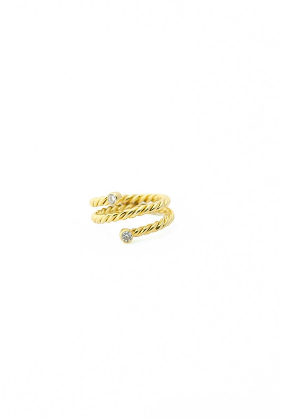 The hand twisted gold ring paired with diamonds is a classical take on the Toi et Moi ring. 18k yellow gold Natural diamond TCW 0.19 - SI1 Available in 7 Hand twisted in NYC Style #030110 Size & Fit...Read more