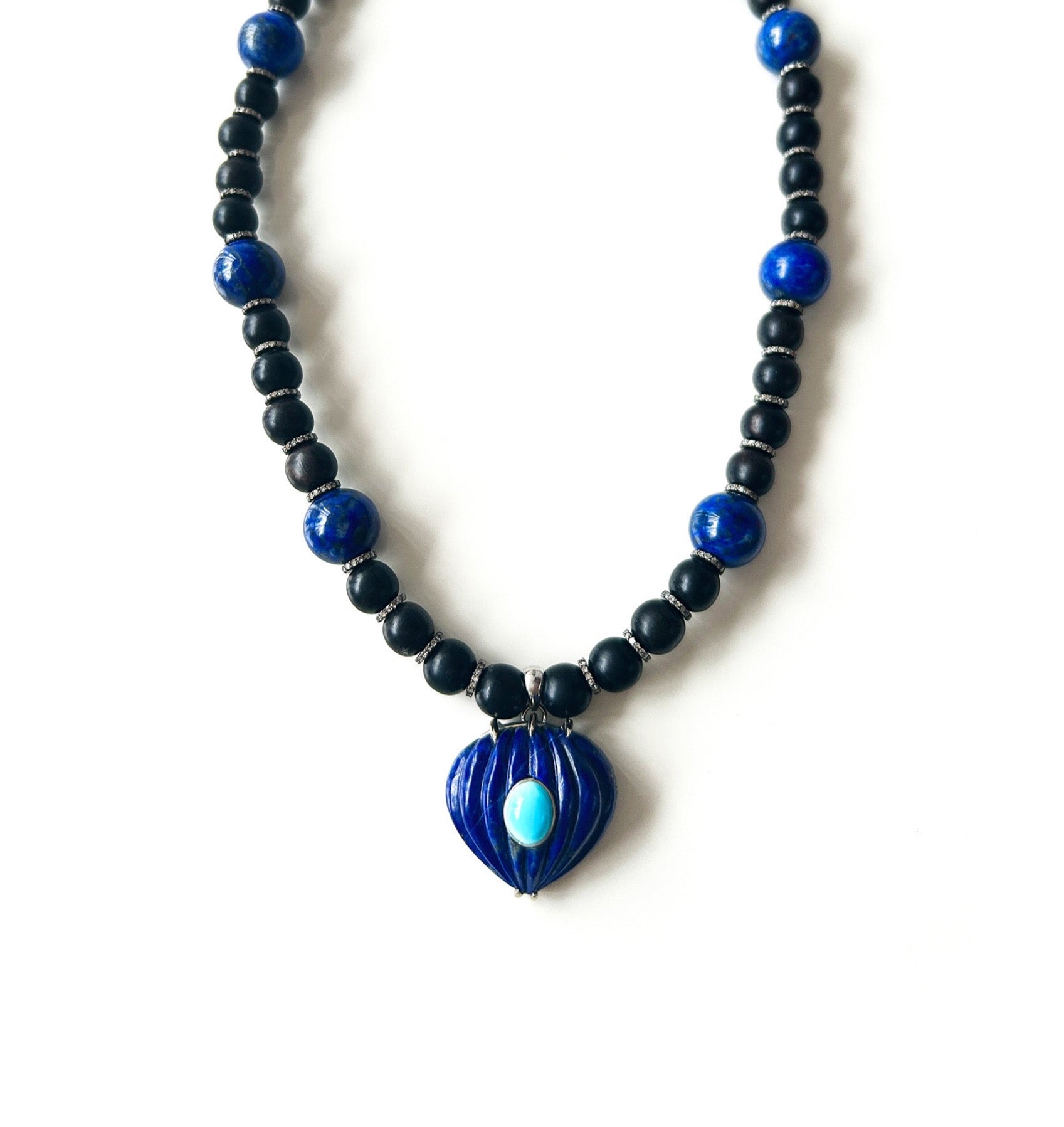 Ebony, Lapis Lazuli, Turquoise & Diamond Necklace