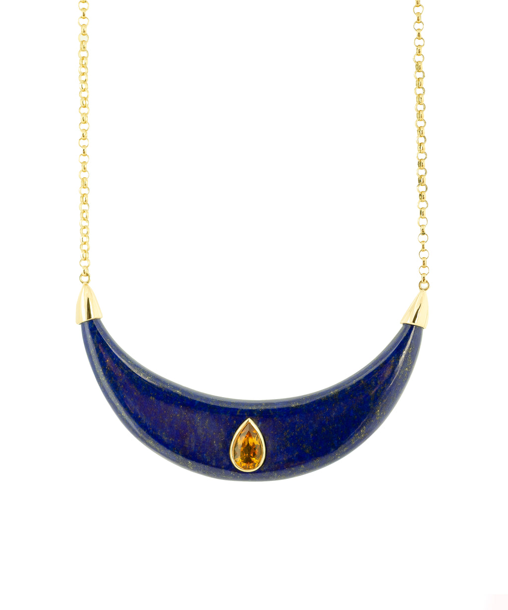 CRESCENT MOON LAPIS & CITRINE GOLD NECKLACE