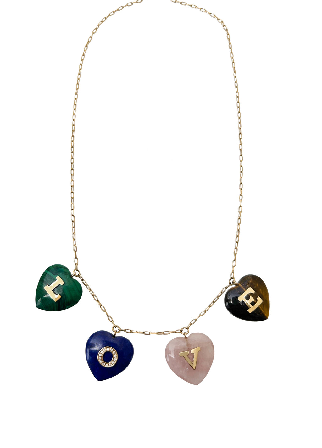 MULTI GEM MINI HEART SAUTOIR NECKLACE
