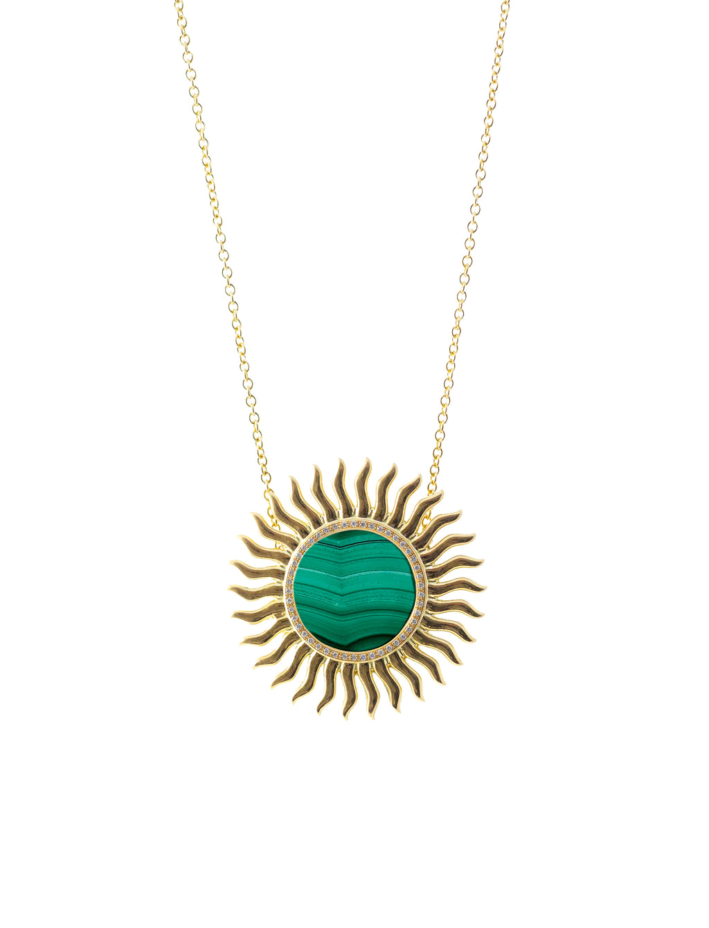 MALACHITE & DIAMOND SOLAR GOLD NECKLACE