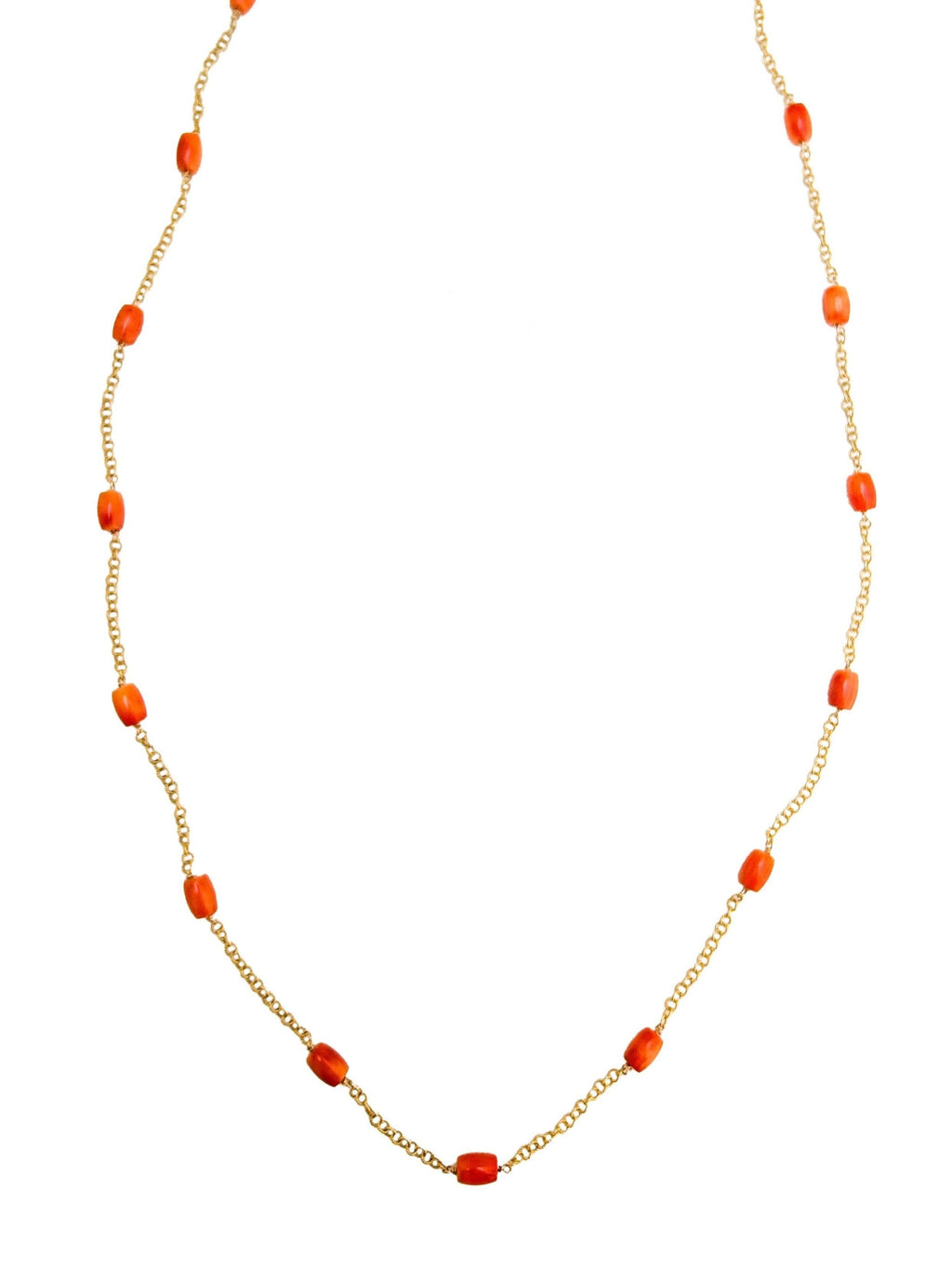 VINTAGE CORAL BEAD SAUTOIR NECKLACE