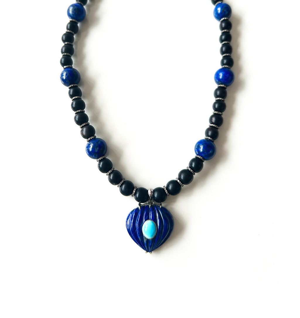 EBONY, LAPIS LAZULI, TURQUOISE & DIAMOND NECKLACE