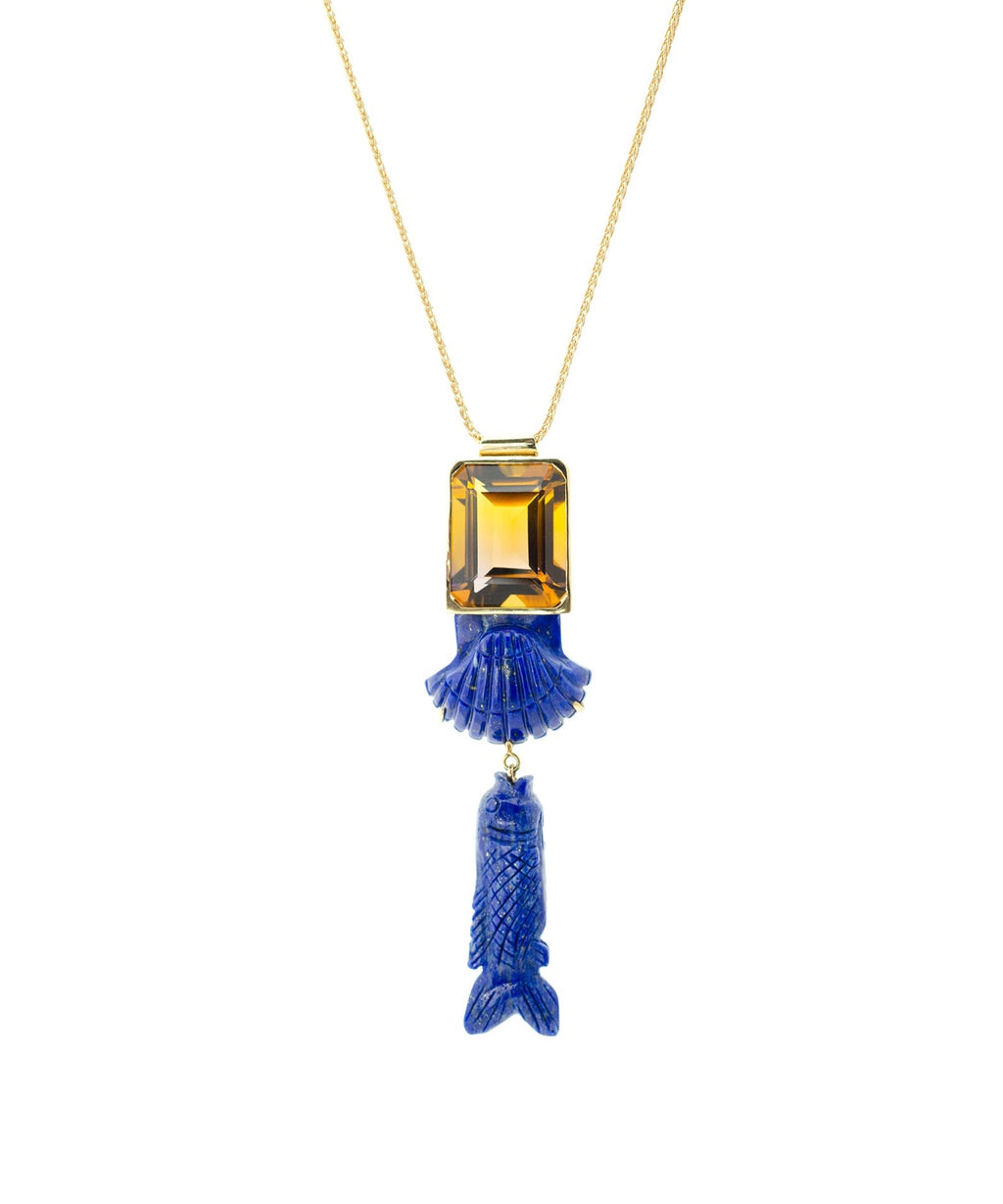 LAPIS LAZULI SHELL & FISH WITH AMETRINE NECKLACE