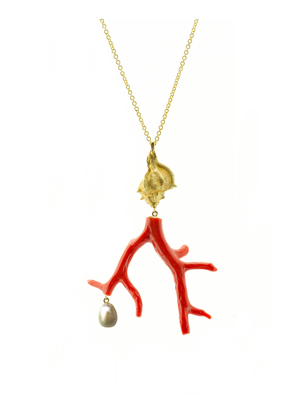SHELL, CORAL & KEEPSAKE NECKLACE