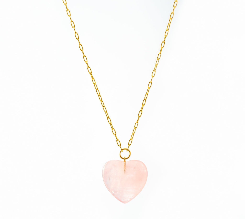 ROSE QUARTZ HEART PENDANT ON GOLD CHAIN