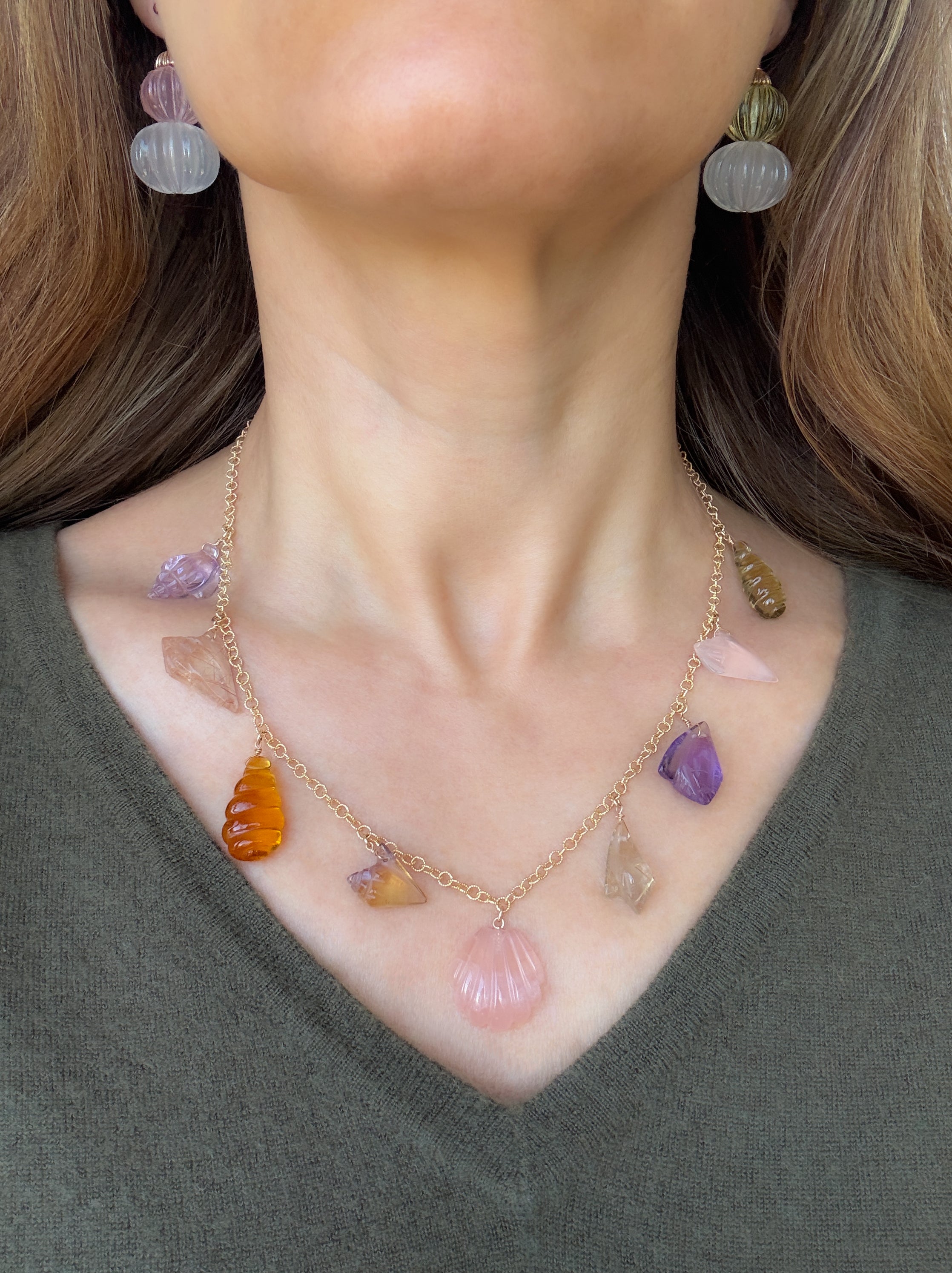 Celebrate the moon and the planets with our new asymmetrical fluted gem earrings. 14k yellow gold Moon and Rose quartz Lemon citrine Pierced ears Available Designed in NYC Style #010215 Size & Fit Hanging from 14k gold studs,...Read more