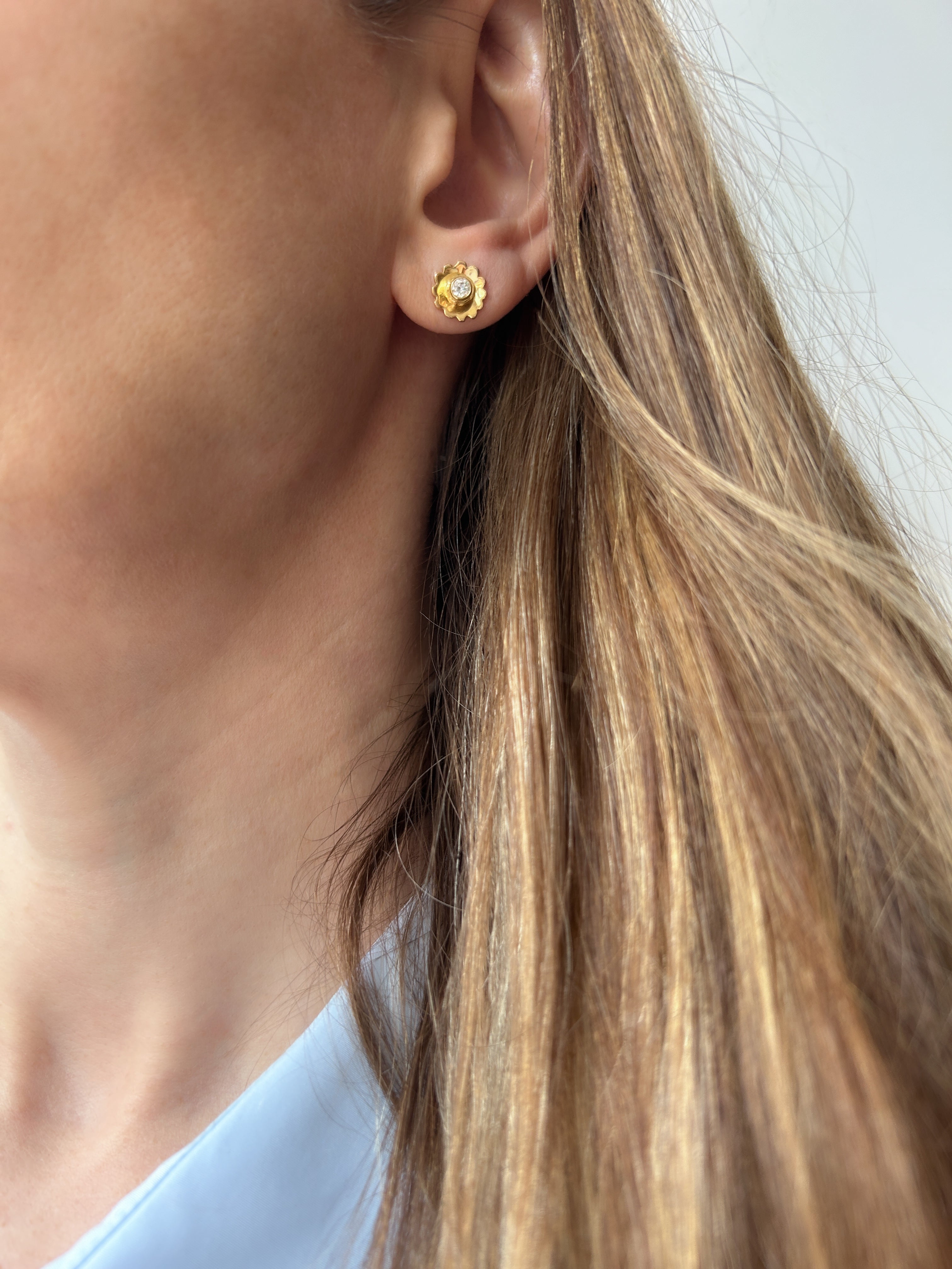 The Étoiles studs shine like stars in the sky. 18k yellow gold Natural diamonds TCW 0.34 - SI1 Pierced earrings Available Designed in NYC Style #010209 Size & Fit Pair of star shape stud earrings in concave shape holds in...Read more