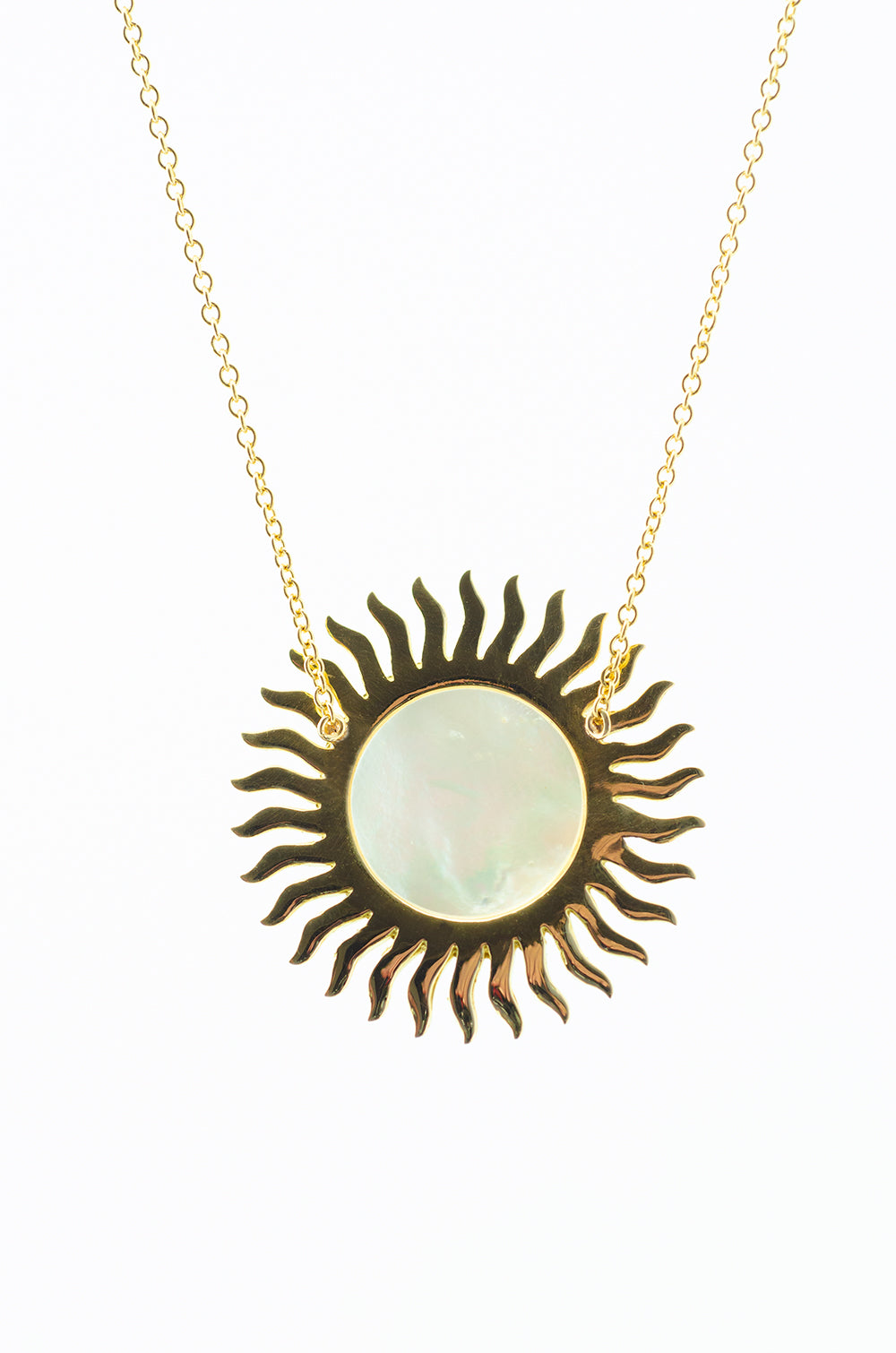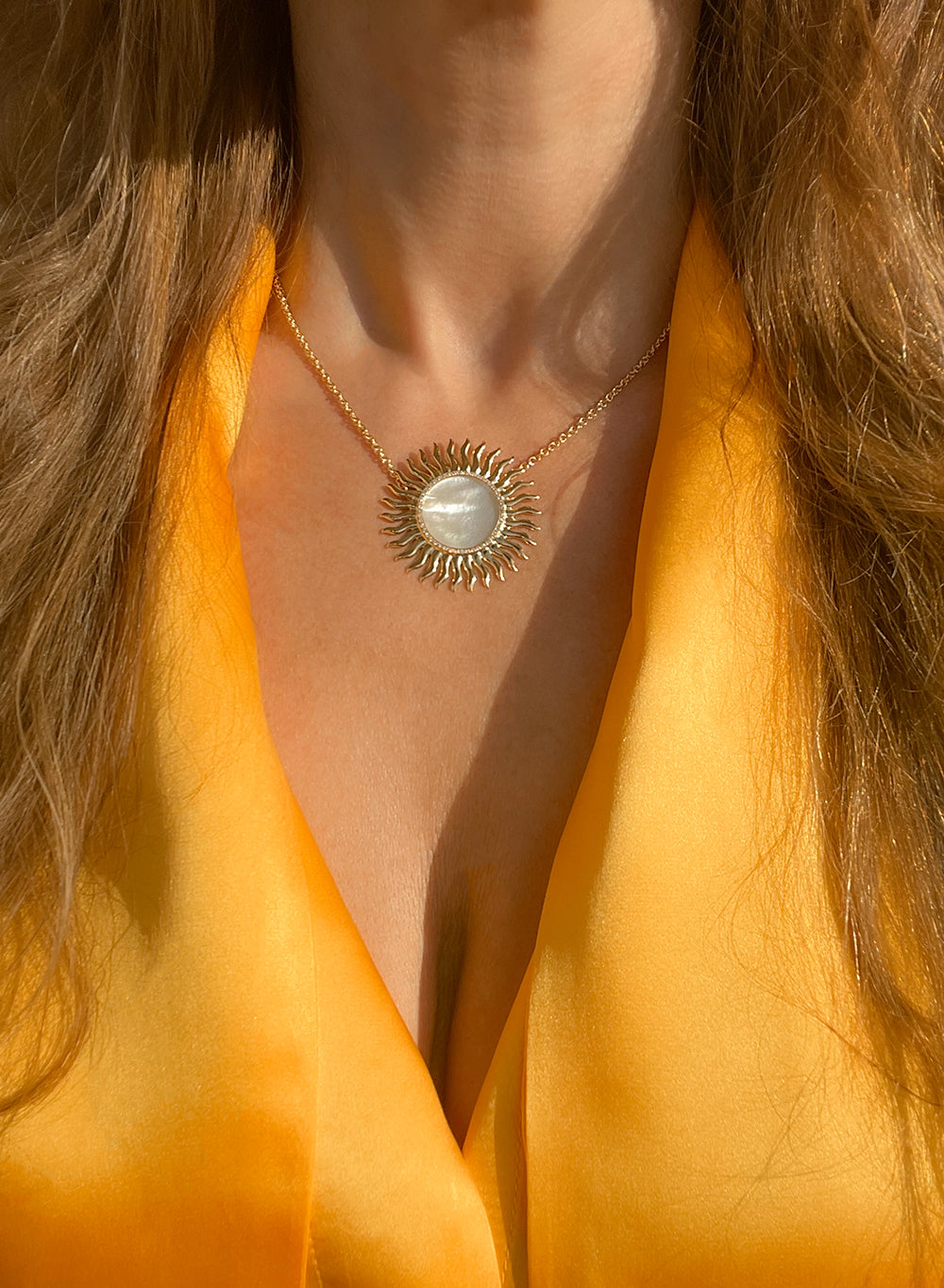 Celebrate the reign of an ancient talisman through the power of the sun paired with mother of pearl.